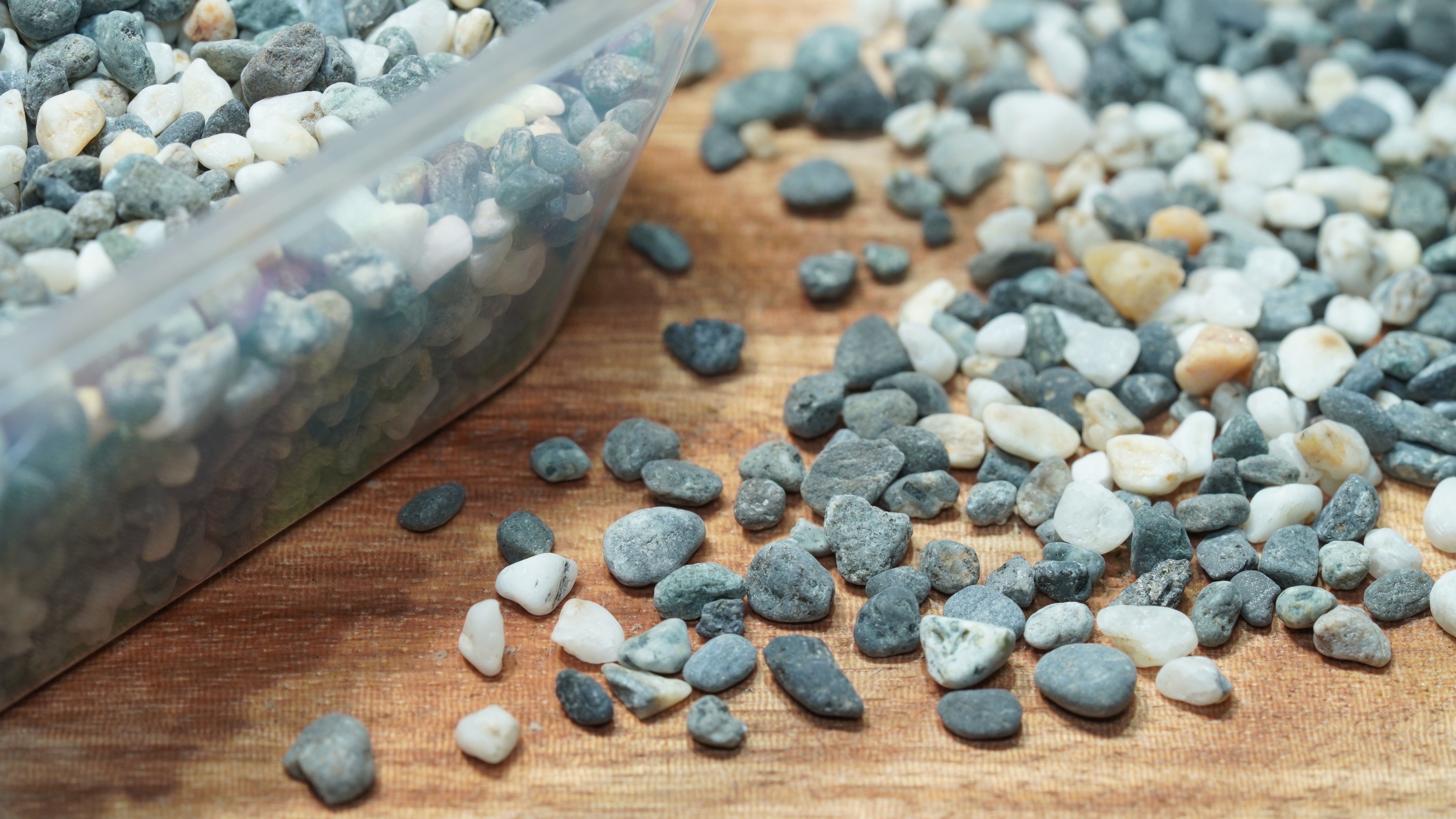 大磯砂是水族常見的經典底砂,顆粒較大且沉重,鋪設後不易漂浮。主要成分為石英與長石,水質穩定不影響酸鹼值。灰黑色調沉穩自然,常見於日系水景與盆栽造景,能有效固定植栽並展現原野氛圍。