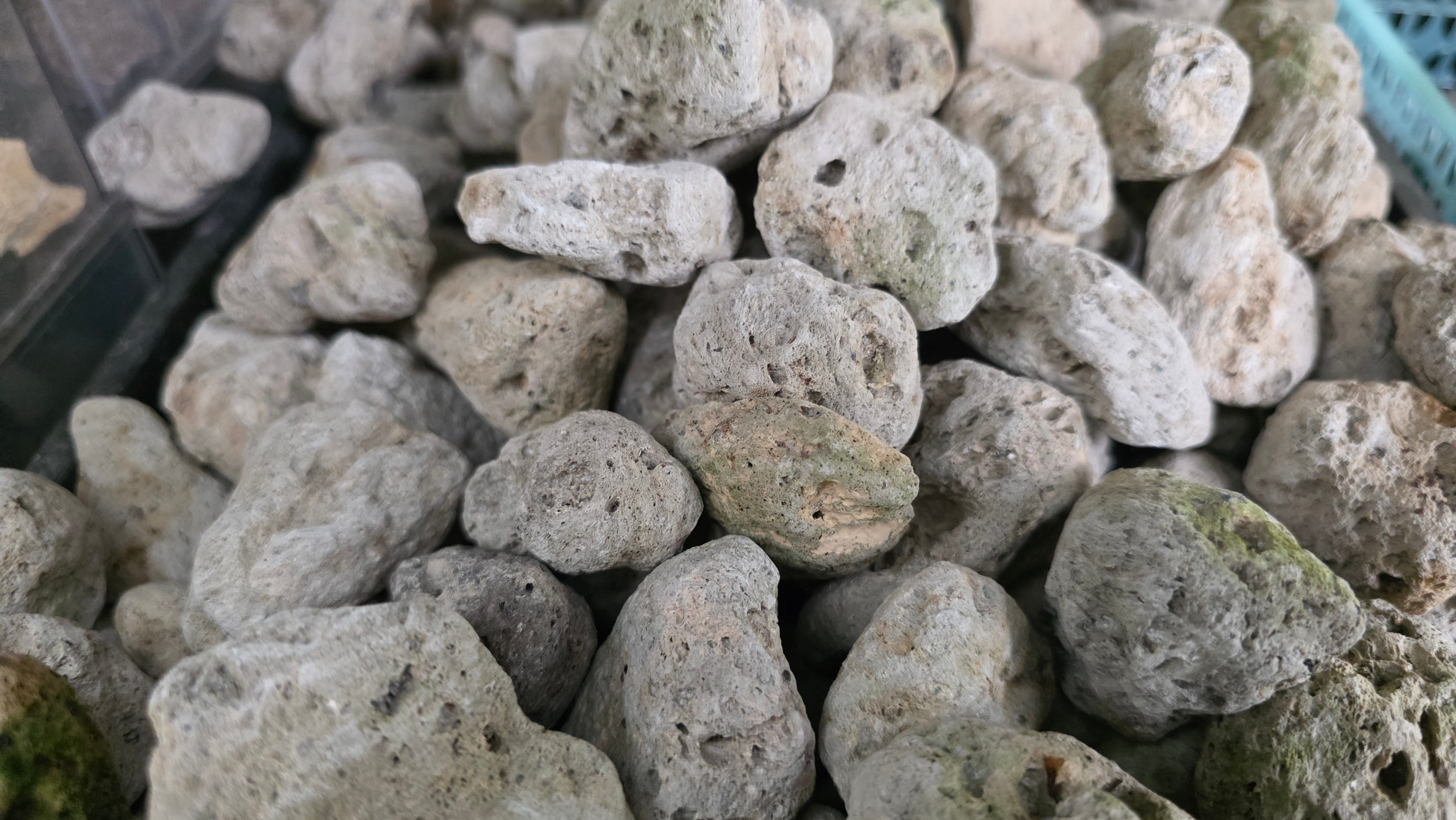 浮石是火山碎屑岩的一種,質地輕盈、多孔,表面佈滿細緻氣孔。顏色多為淺灰或白色,帶來通透清爽的效果。由於重量輕巧、造型自然,常被用於造景中作為點綴,增添空氣感與對比層次。