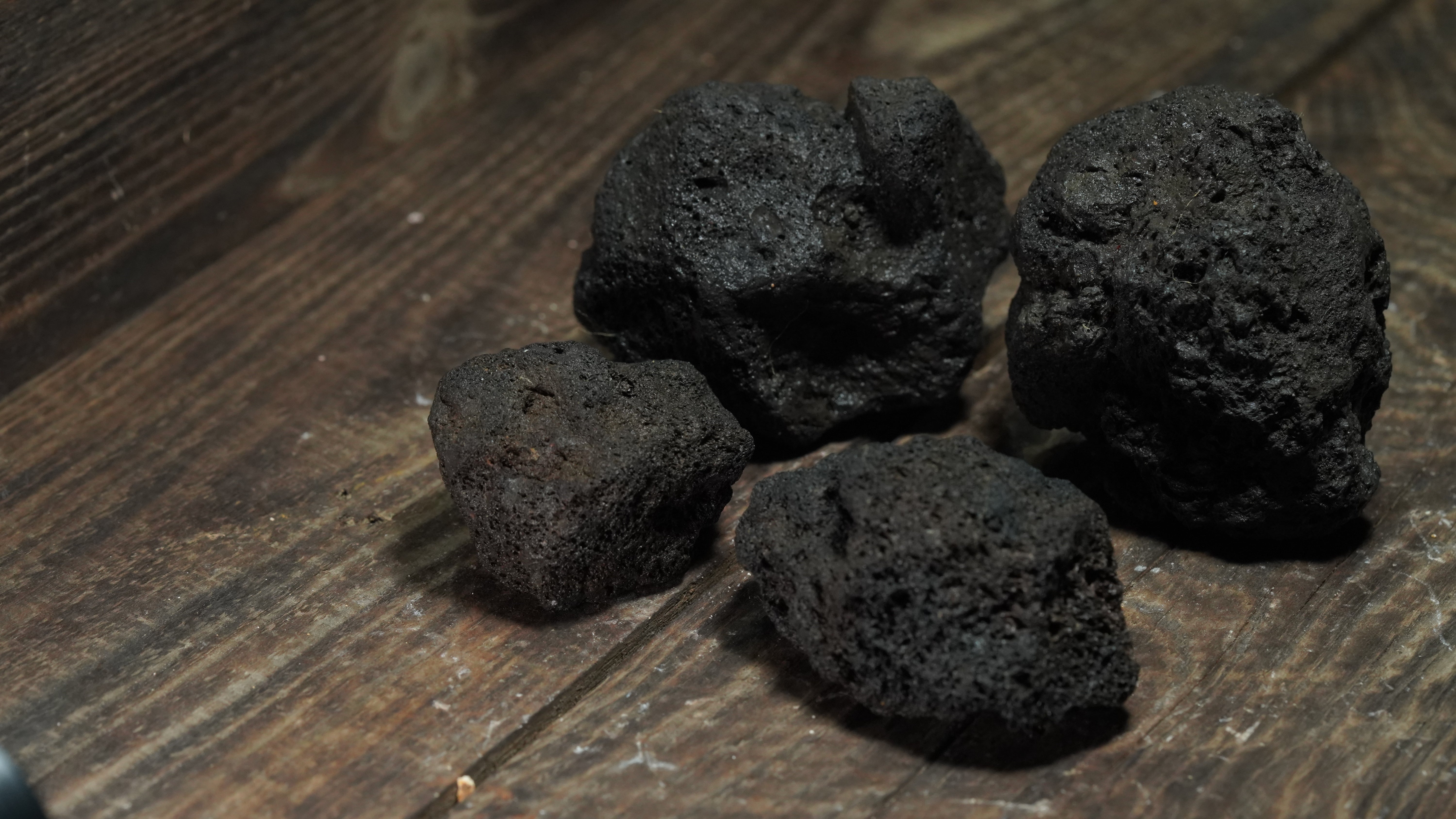 🎨 色澤表現:深灰至黑色,孔隙明顯