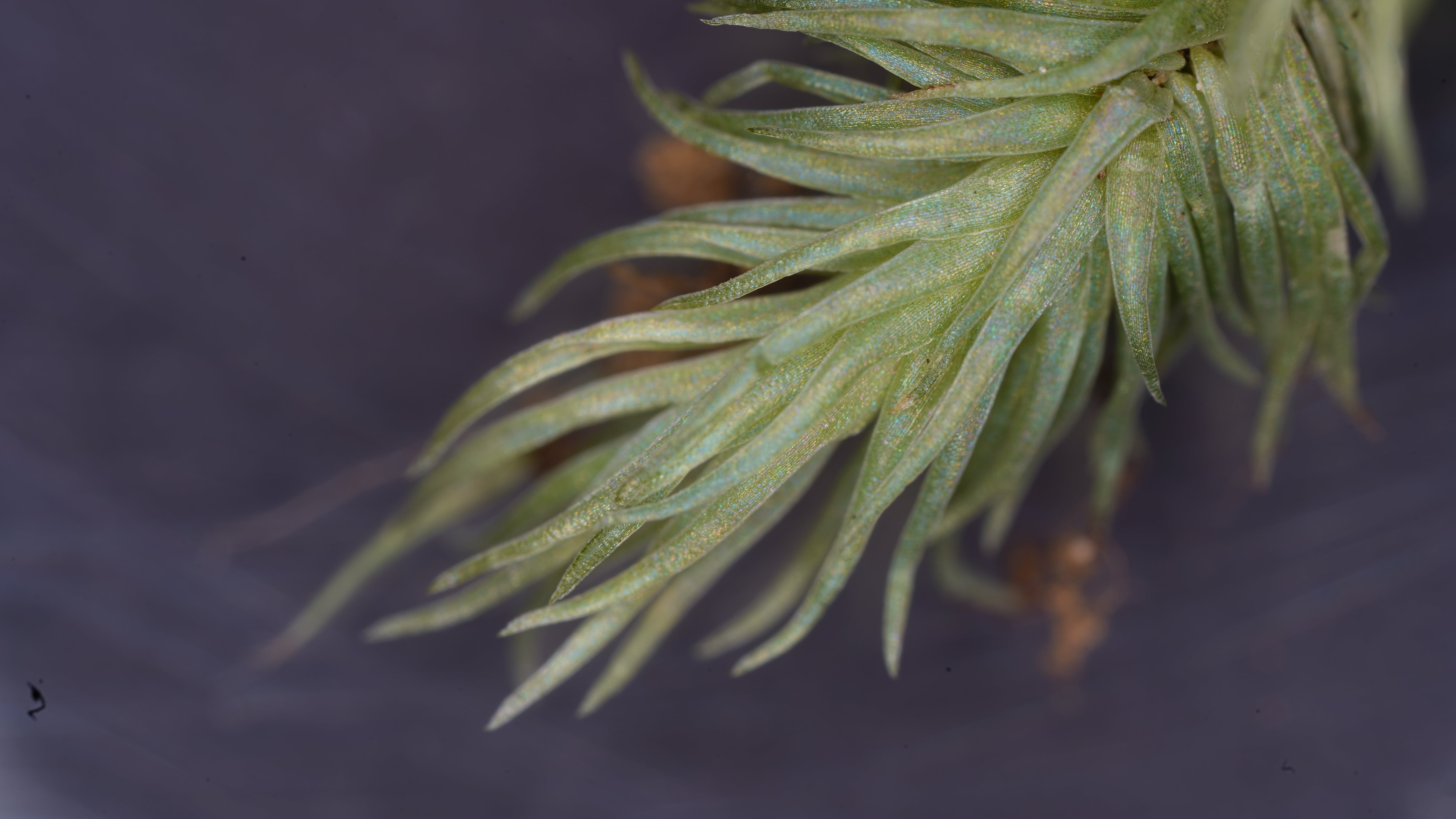 糙葉白髮苔葉表粗糙、顏色較深,保持與普通白髮苔相似的直立叢狀姿態。雖然資料有限,但其耐陰與保水能力強,生長節奏穩定。適合用於中層微景園景中,與其他白髮苔交錯配置時,能增加質地層次與視覺對比,營造自然混栽效果。
