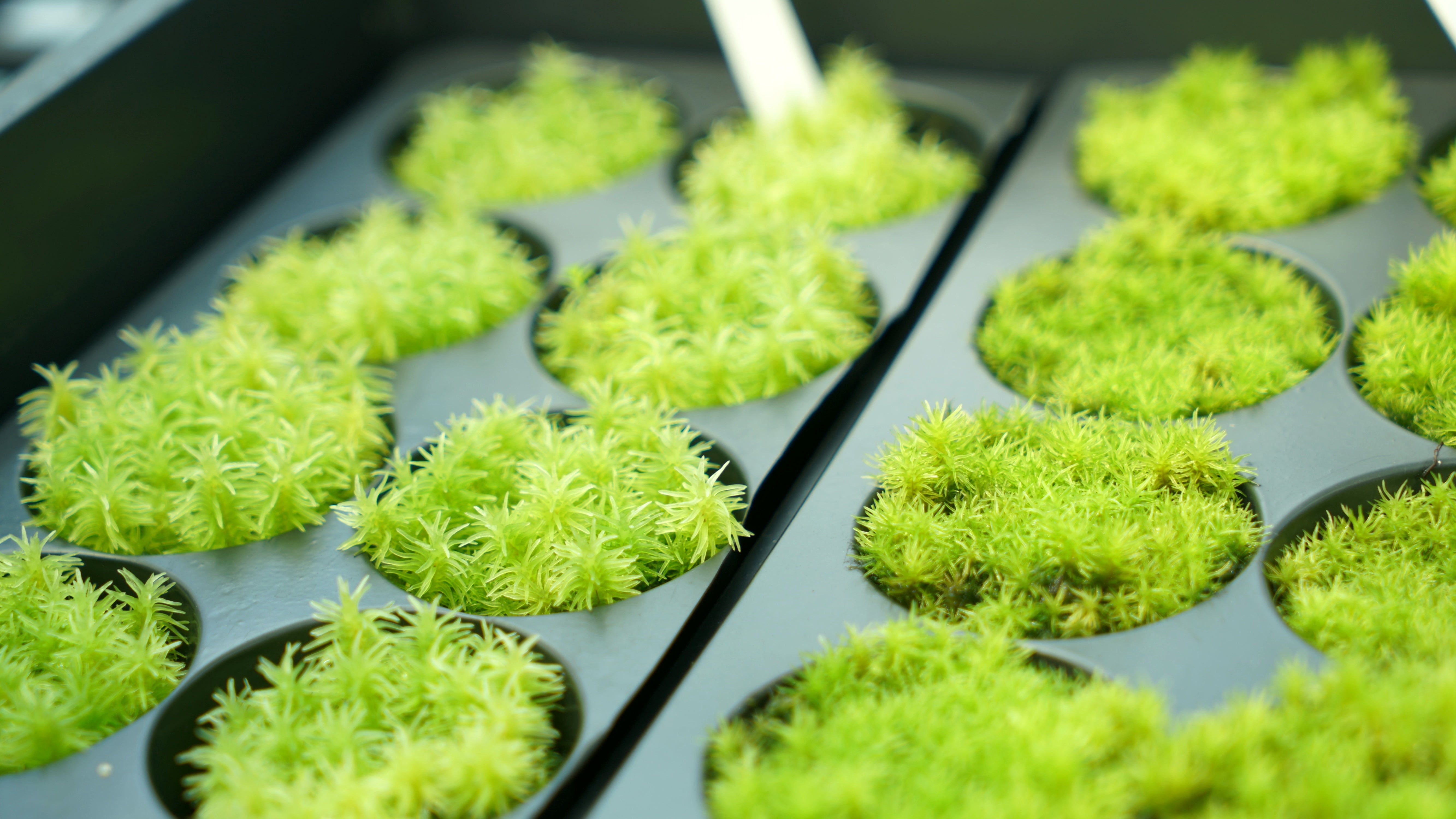 燄苔屬|Pyrrhobryum 燄苔是一種體型較高、直立生長的苔蘚,單株能長至 5–10 公分,植株修長、葉片呈披針形,有明顯葉中肋,整體姿態優雅自然。在野外多零星出現在潮濕涼爽的林下地形。特別的是,它的孢子囊通常從莖的中段長出,這種構造在苔蘚中較為罕見。因為高度明顯、型態挺拔,常被選作微景觀中的「小樹」素材。建議使用鑷子將剪下的健康枝段插穩於介質中,定型後能維持良好垂直感。燄苔偏好高空氣濕度與涼爽通風的環境,但基質不宜過濕,以免爛根或倒伏。 📈 栽培資訊 ☀️ 光照需求:●●○○○(喜微光環境,忌陽光直射)💧 水分需求:●●●●○(需高濕空氣,基質略濕即可)🌱 種植難度:●●●○○(較需經驗與耐心) 🌡️溫度區間:17~26°C 📌 建議用途:適合做為微景觀中的直立主角,營造多層次或「森林感」場景。🧪 適合種法:✅ 全悶養 ✅ 半悶養(需穩濕) 📦 售價資訊與尺寸請參考頁面標示。
