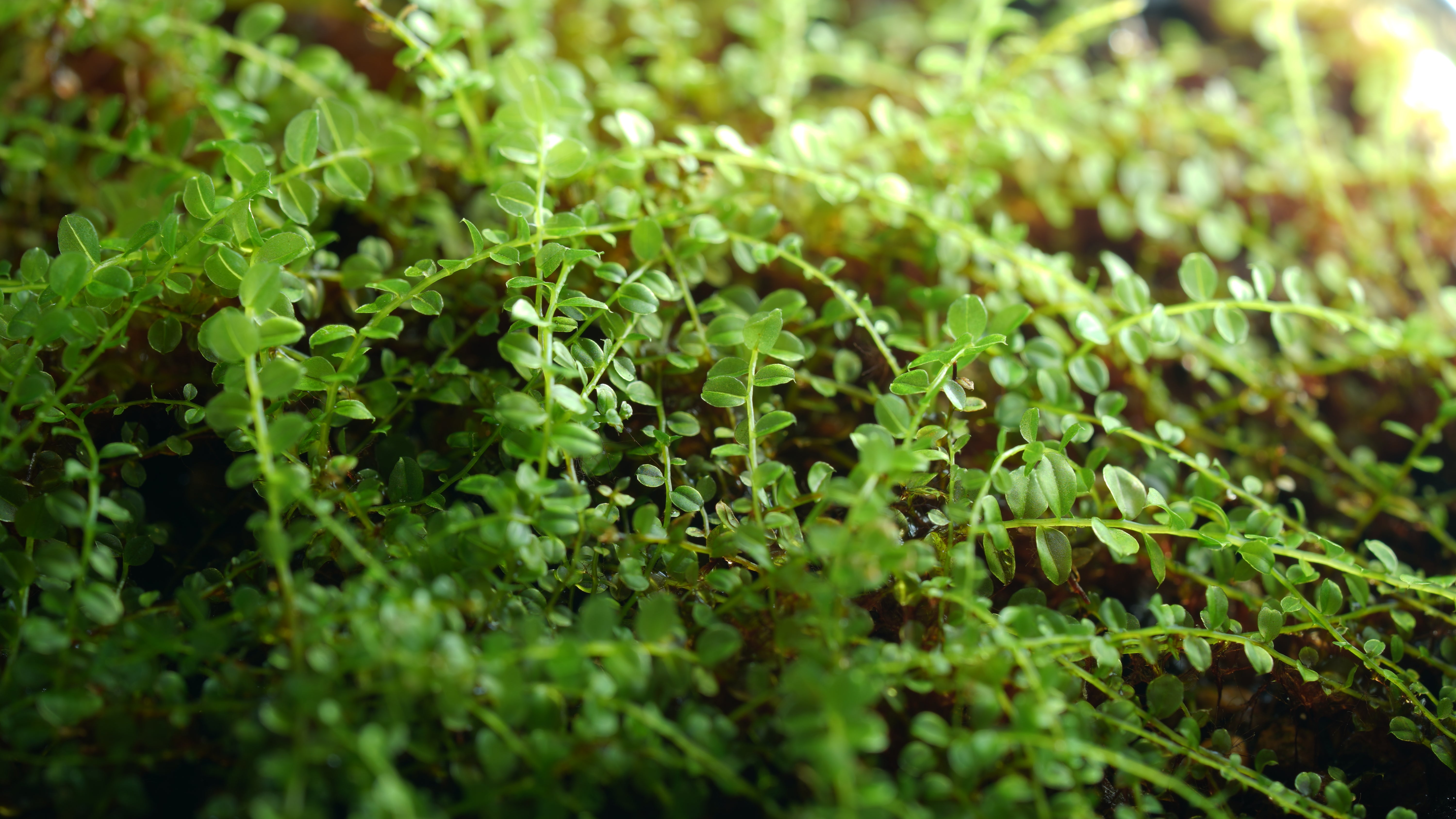 質地細緻、鋪地生長,是微景觀常見的基底苔蘚之一。前期呈匍匐型態,生長速度快,能快速覆蓋底層。經過長時間照養,約一年後會逐漸長出直立型莖,展現出另一種風貌。根據我們多年栽培經驗,走燈苔對環境變化容忍度高、種植門檻低,是非常適合初學者的入門品種。