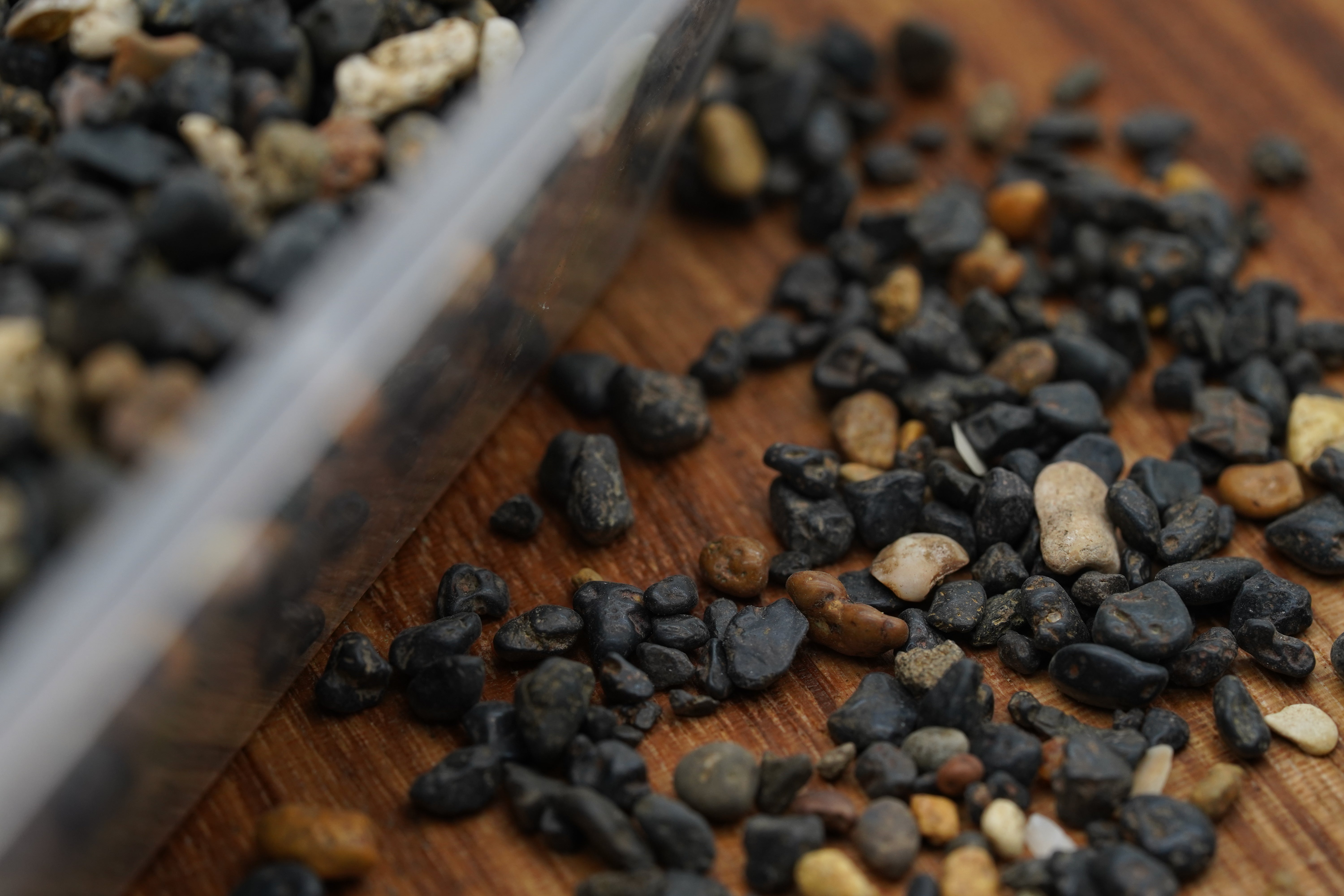 黑金砂色澤深黑帶有低調光澤,鋪設後能與植栽形成鮮明對比。顆粒細緻均勻,鋪面平整,適合打造沉穩或現代感的造景。質地穩定,不易粉化或影響水質,是兼具實用與美感的常用砂材。